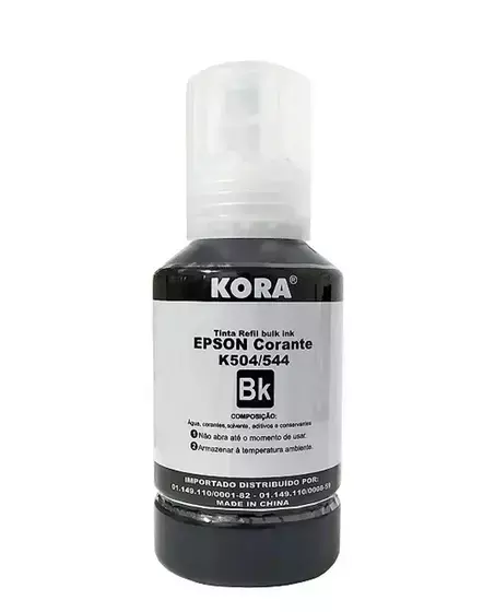O Refil de Tinta Kora na cor Preto (Black), compatível com a Série 504/544 para impressoras Ecotank/Bulk Ink, oferece uma opção eficiente e pronta para uso, com uma generosa quantidade de 127ml de tinta corante. Especificamente formulado para modelos como L3108, L3110, L3111, L3118, L3119, L3150, L3158, L3250, L4150, L4158, L4260, L4160, L4168, L5190, L6160, L6161, L6168, L6170, L6171, L6178, L6190, L6191, L6198, e L6270, este refil, novo e lacrado, atende aos padrões de qualidade, proporcionando uma recarga eficiente e resultados de impressão nítidos. Com a marca Kora, reconhecida pela sua confiabilidade, os usuários podem contar com uma opção de tinta que garante desempenho consistente em suas impressões, mantendo a qualidade e a durabilidade. Especificação Cor: Preto • Black Quantidade de Tinta: 127ml Tipo: Corante Padrão: Específico Estado: Novo, Lacrado e Pronto para o uso
